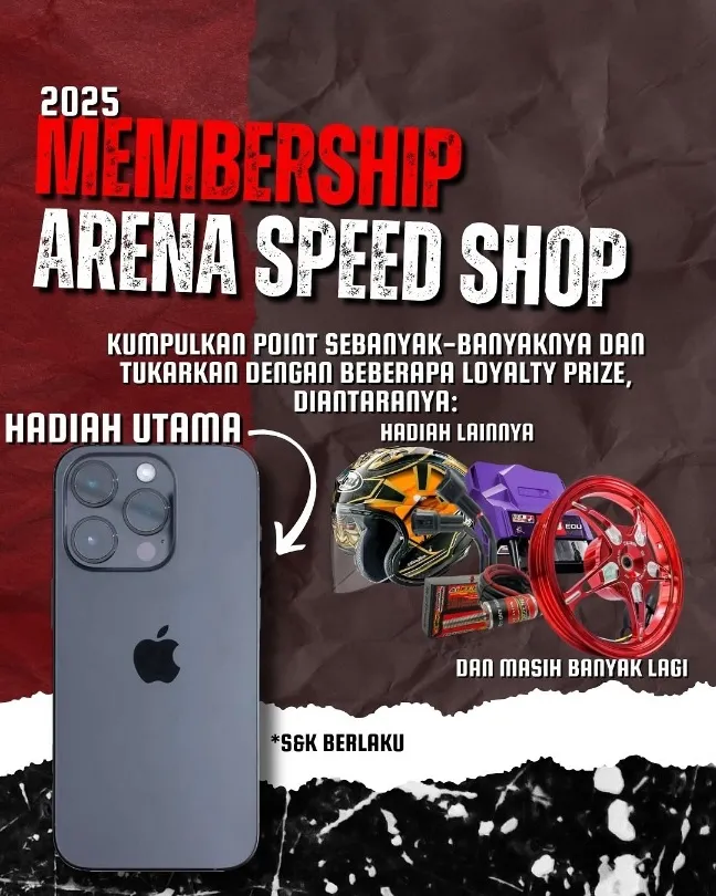Buat menghargai pelanggan setia, ARENA SPEED SHOP luncurkan Program Membership Eksklusif 2025 dengan konsep “kumpulkan poin sebanyak-banyaknya, tukarkan dengan hadiah menarik”.