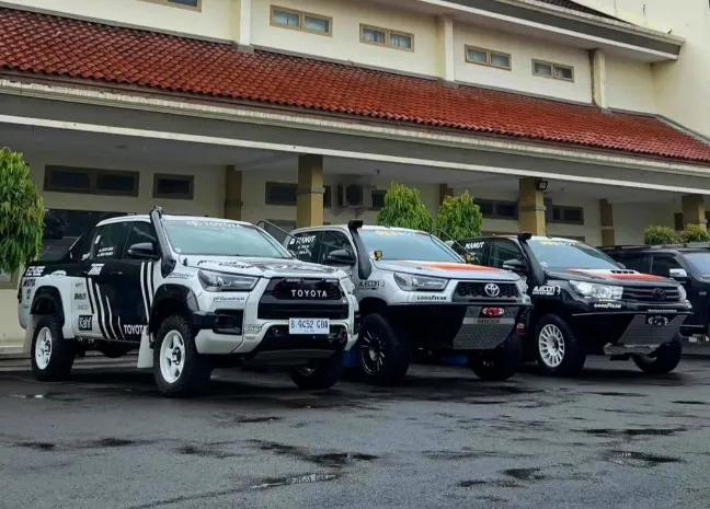 Tim rally nasional dengan mobil-mobil modifikasi ekstrim.