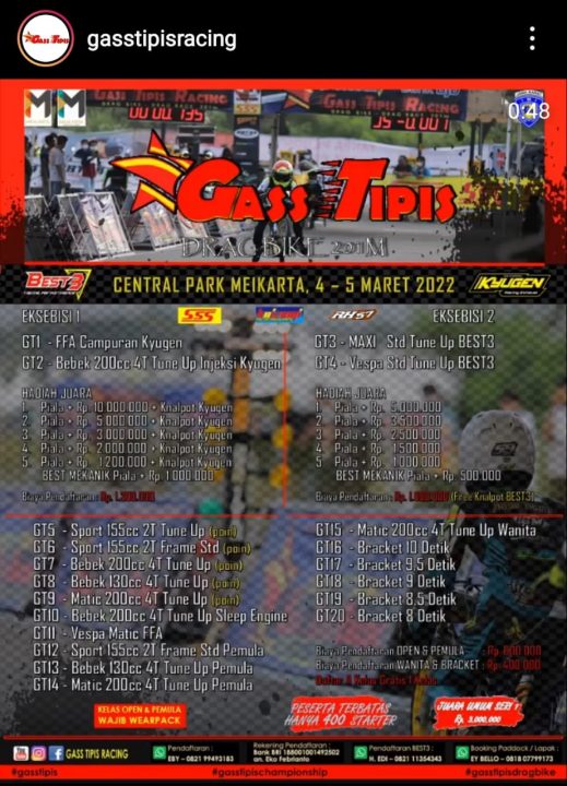 Juga pada ajang kejuaraan Gass Tipiss Road Race dan Drag Bike, yang akan diselenggarakan di Central Park Meikarta, pada tanggal 4-5 bulan Maret mendatang.