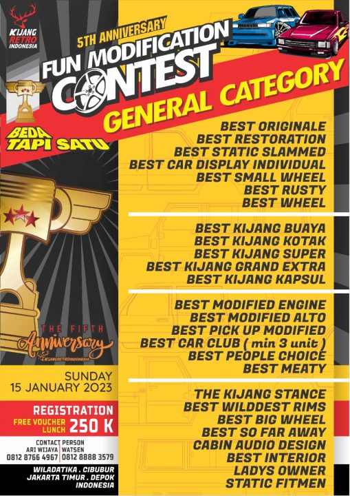 Dimana ajang modifikasi ini juga sekaligus menyambut Anniversary Kijang retro Indonesia yang ke-5, sekaligus menjadi ajang silaturahmi para pecinta Mobil Toyota Kijang berjenis klasik.