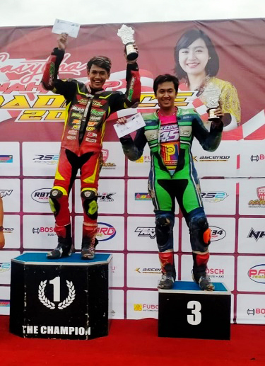 Otomotifnews.com – Bambang selaku Owner AJS Koizumi Racing Team, harus berdiri bangga melihat podium yang diraih pembalap kesayangannya Aqhsal Ilham dan Alif Jihad.