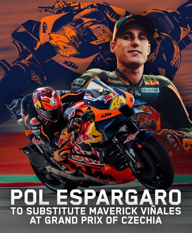 > “Red Bull KTM Tech3 akan menurunkan dua KTM RC16 akhir pekan ini di Brno. Pembalap penguji Red Bull KTM, Pol Espargaro, akan memulai debutnya pada 2025, menggantikan Maverick Viñales yang sedang menjalani masa pemulihan pasca operasi bahu.”